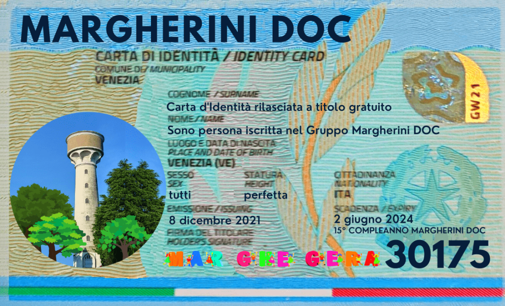 La Marghera 30175 Card è GRATUITA. Nessun esborso di denaro per la tessera che può essere digitale e cartacea da ritagliare sul calendario 2022. Niente moduli da compilare, non ci sono dati sensibili di privacy da fornire, nessuna iscrizione a organizzazioni con secondi fini. La possono avere per diritto solo i Margherini DOC e i loro familiari in quanto membri del gruppo.