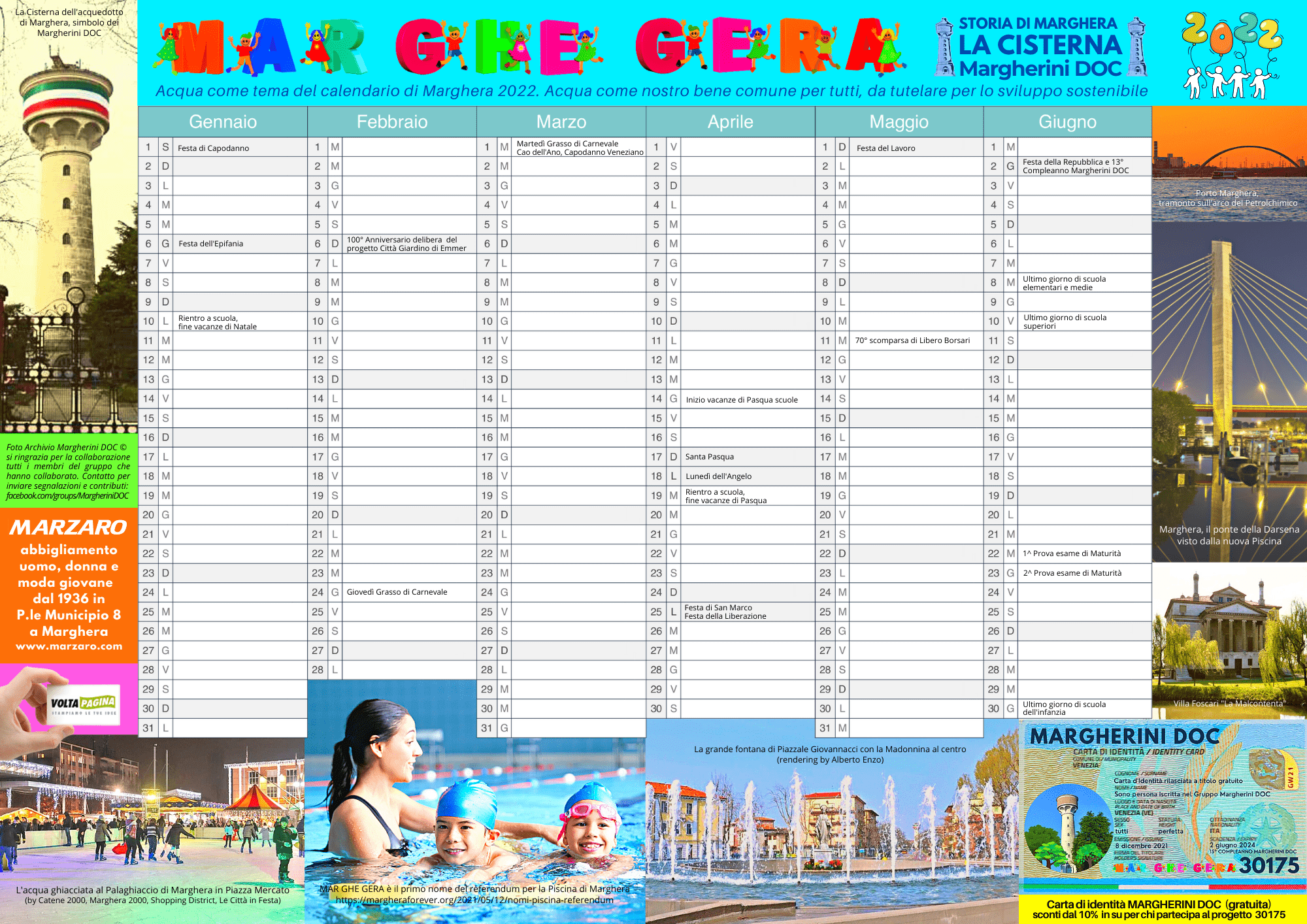 Calendario di Marghera 2022 tema acqua, semestre gennaio, febbraio, marzo, aprile, maggio e giugno 2022