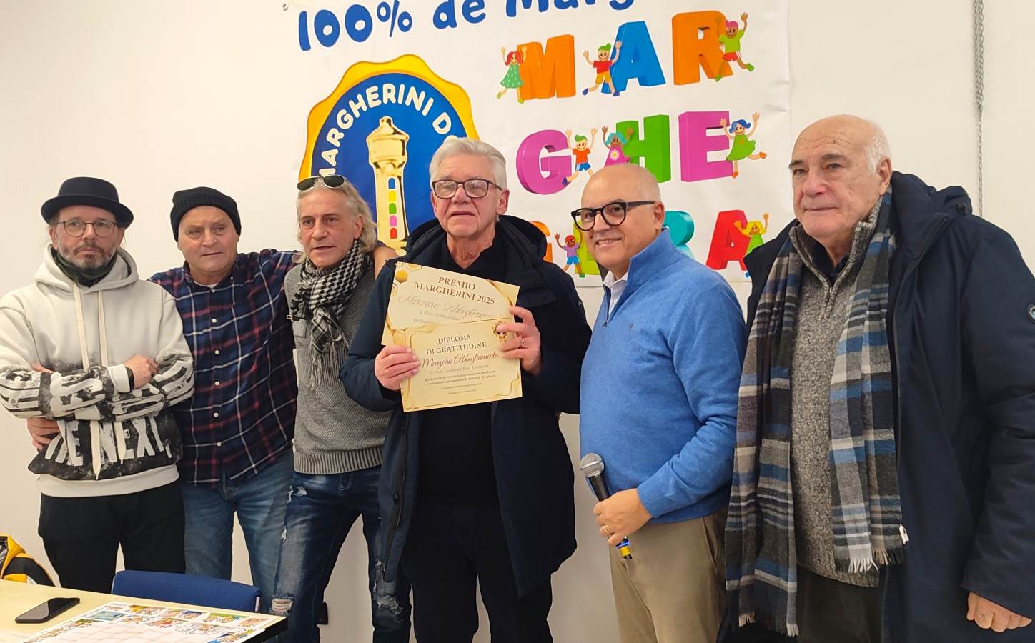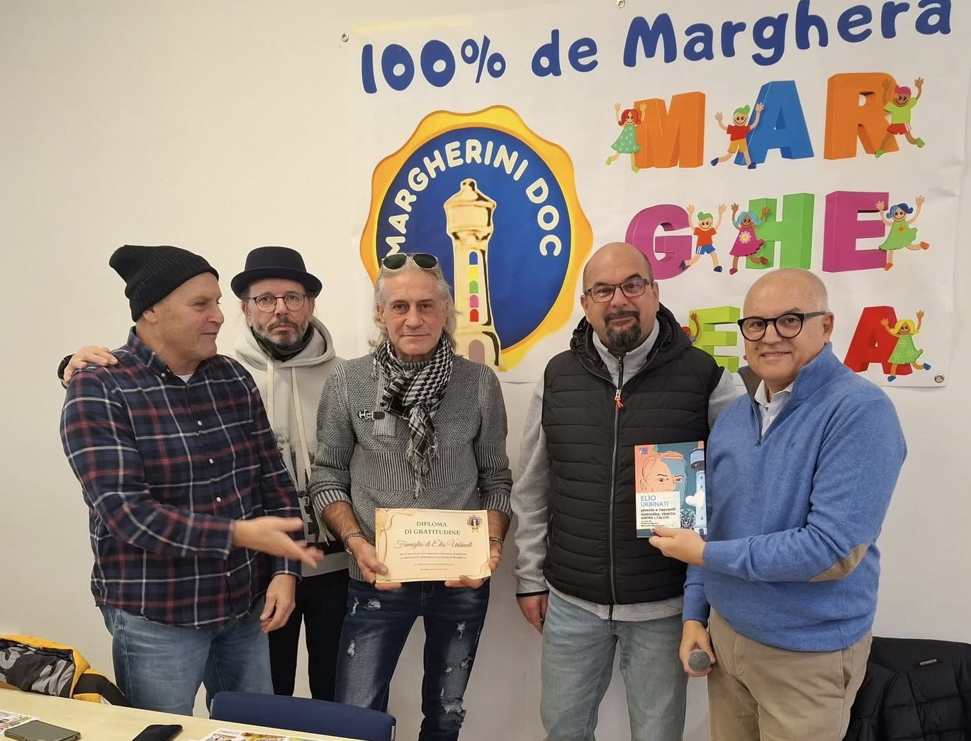 Accanto ai premi sono stati consegnati anche i Diplomi di Gratitudine, un riconoscimento speciale per chi dimostra da anni un legame profondo con Marghera e il suo tessuto comunitario. Hanno ricevuto la pergamena la famiglia del poeta Elio Urbinati, i Fratelli Cavalletto, l’Associazione Artigiani e Piccole Imprese CGIA – sede di Marghera, il Centro Culturale Artistico Serenissima, il Coro Serenissima Venezia, il Centro Stampa Volta Pagina, Thomas Menegon e, nuovamente Marzaro Abbigliamento, insieme a Elvio Goldin ed Enis Lorenzon ai quali è stato conferito sia il premio che il diploma in vista del 90° anno di attività.