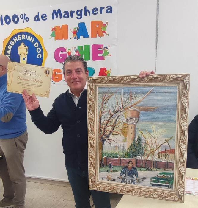 Nel corso della cerimonia, nella quale sono stati distribuiti gli iconici calendari semestrali 2026 e la Marghera 30175 Card gratuita, il premio ha riconosciuto il valore di oltre trenta realtà che rappresentano l’anima autentica di Marghera. Dalla storica Rosticceria Fratelli Bottazzo, vincitrice dell’edizione 2025 nel podio con la storica Cartolibreria Lamon e alla Pasticceria Milady, seconda e terza classificate premiate con i quadri della cisterna dell’acquedotto, simbolo di Marghera, realizzati dagli artisti Michele Serena, Elisabetta Conte e Guido Zennaro.