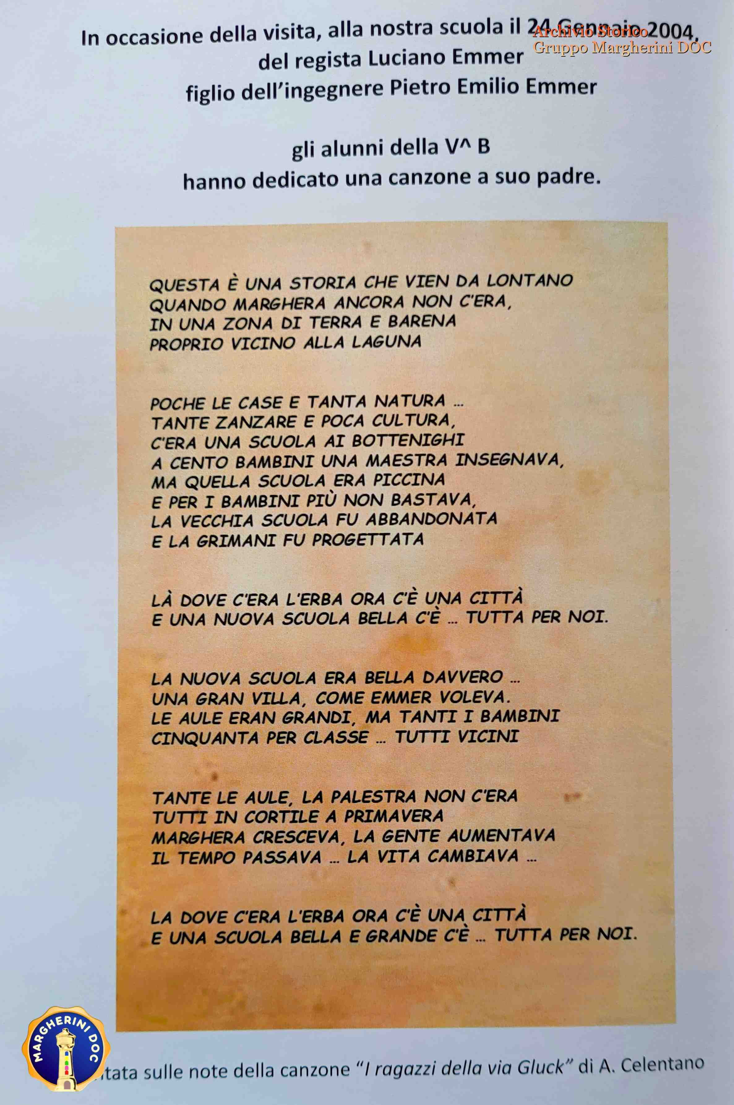Sono parole che i Margherini DOC hanno accolto con gratitudine sincera, perché rappresentano un riconoscimento morale importante al lavoro di memoria, racconto e promozione civica che dal 2000 (come gruppo fondato dal 2009) i Margherini DOC portano avanti per Marghera e per la sua storia. Al Dirigente Scolastico succeduto alla prof.ssa Marisa Zanon i margherini DOC hanno consegnato una lettera con nota informativa.