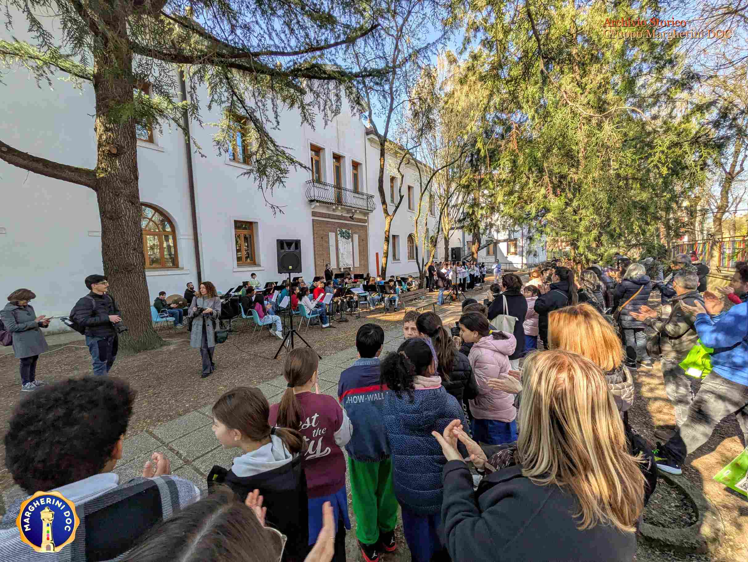 Si tratta di un aspetto che merita di essere evidenziato perché una scuola che compie cento anni non celebra solo se stessa, ma mostra che la memoria, quando viene condivisa, diventa patrimonio collettivo. La mostra con i lavori degli alunni, il libro storico, le cartoline disegnate dagli studenti e il racconto visivo della giornata sono tutti tasselli di un unico disegno di una Scuola Grimani viva e nello stesso tempo archivio di relazioni, esperienze e appartenenza territoriale proprio nell’ottica che muove l’impegno dei Margherini DOC.