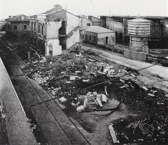 Foto del magazzino del Porto di Venezia che saltò in aria per le molte mine stoccate